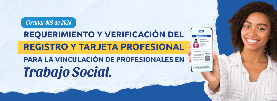 El Consejo Nacional de Trabajo Social (CNTS) expide la Circular 003 de 2026, mediante la cual informa a entidades públicas, empresas privadas, fundaciones, corporaciones y en general a todos los empleadores del país, la obligación legal de verificar el registro y la tarjeta profesional vigente de quienes sean vinculados como trabajadores y trabajadoras sociales, a fin de garantizar el ejercicio legal de la profesión.